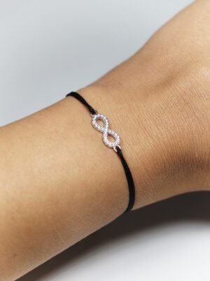 Materiale: Element argint 925 cu cristale Zirconia, snur textil, bratara este reblabila.